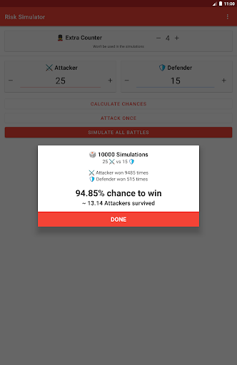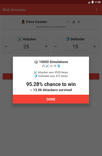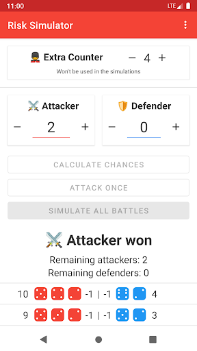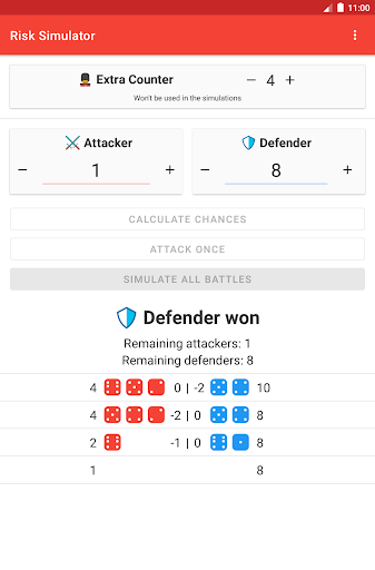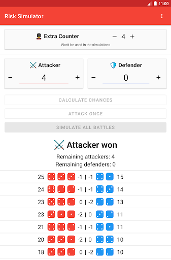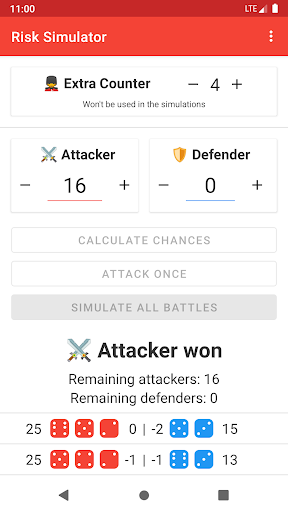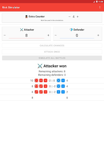 Risk Battle Simulator can either simulate the entire fight, or simulate each round individually.