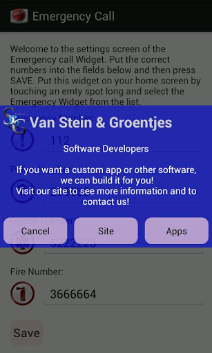 *DISCLAIMER: calling the emergency number without reason is in most countries a crime. Make sure that the widget cannot be accidentally activated. We are not responsible for any damages that it might cause, and any legal problems it may give you.