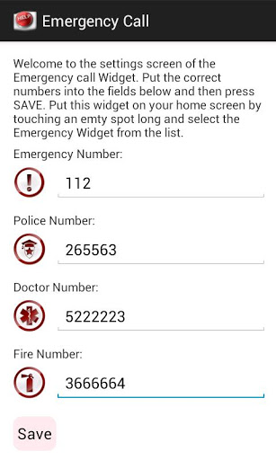 Open the application to set-up all the emergency numbers, (you can also specify another number that can be called by emergency, your mom for example )