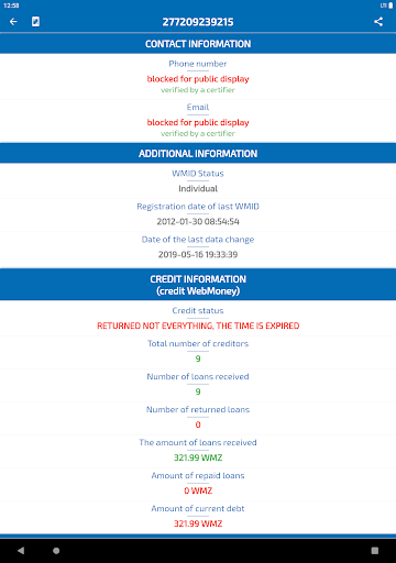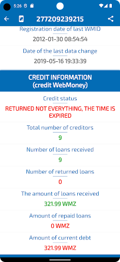 - View credit status, presence/absence of debts in the WebMoney system