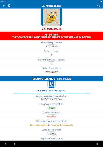 Our application will help you quickly get public information about the necessary member of the WebMoney system by its WMID (identification number in the WebMoney system). We recommend checking the user before each upcoming transaction. By taking just a few minutes to check, you can avoid unwanted consequences due to the actions of unscrupulous users.