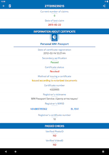 - Checking the status in the WebMoney system by WMID