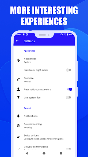 Personalize your screen and chat bubbles with custom colors and set beautiful custom backgrounds as chat backgrounds.