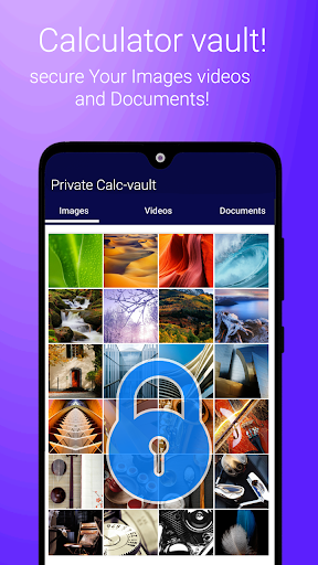 The perfect application to lock the personal information like images, videos, documents through password. Calculator Vault is a private images hide app that lets you hide your private pictures, important videos and secret documents to protect in your phone. Calculator vault- High quality HD video locker in your phone. You can use your real password registered in your phone to quick unlock photos, unlock videos and unlock documents easily.
