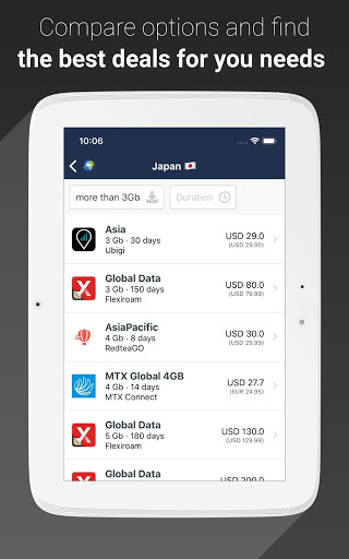 The eSIMs App is useful for travellers and tourists that want to stay connected as they travel abroad and are looking for an affordable data plan. With the eSIMs App, you can :