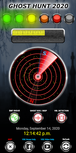 This app also feature Vibration Detection as mentioned earlier. When using Vibration Detection ( VIB. ). Make sure to have your device sitting on a Flat Surface that has no vibrations already ( NO CAR HOOD with Engine running ). When a Vibration is Detected. The App will BEEP ( GHOST BOX AUDIO OFF ) or the V3Audio will start ( Ghost Box Audio ON ). You will also see a BLUE LED and Animated Graphics over the Speaker of a Spinning Static Ball ( RADAR OFF ).