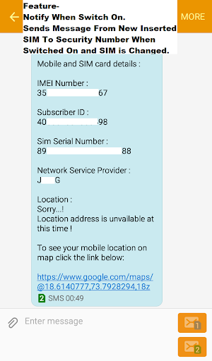 message to “Security Number” with location, sim-card
