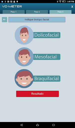 APP PARA LA DETERMINACION DE LA DIMENSIÓN VERTICAL OCLUSAL ESPECIFICO PARA SEXO Y BIOTIPO FACIAL. Keywords: OVD, DVO, DIMENSION VERTICAL OCLUSAL, VD-METER, OCCLUSAL VERTICAL DIMENSION. Email address: contacto@vdmeter.com