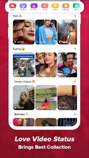 Add beauty to your feeds, status and posts with this charming love video status application. Download the app now and unleash the thoughts inside you through these adorable love videos and status.