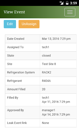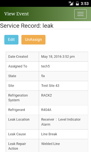 R|trace record is a data capture tool intended for refrigerant technicians who are registered users of the R|trace refrigerant management and compliance system. Record lets the tech log leak repair actions and note important compliance details while on site. It also lists current events that need action by the user and provides for look up of historical events with audit trail. Information is synchronized with the server for use in real time reporting and performance analytics.