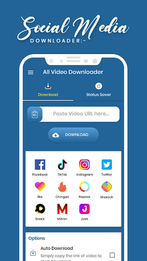 All Video Downloader download Video and Images from Instagram , Whatsapp , Facebook , Twitter and Many More Platforms.
