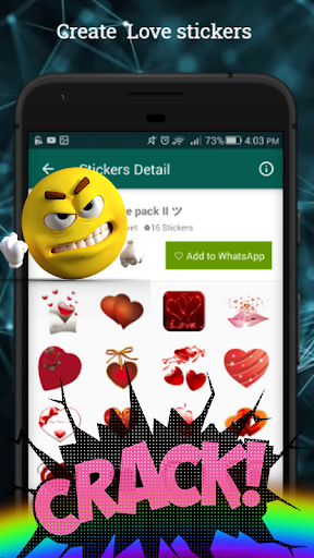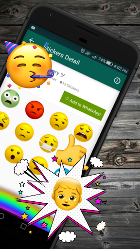 It helps to easily express your emotions, With the participation of the attached smileys or smileys of your creation send stickers on WhatsApp instead of emoji, It's dedicated to emojis for android