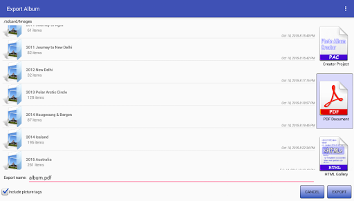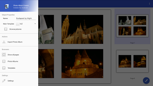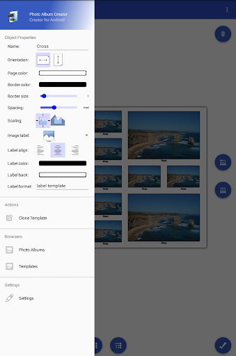 Photo Album Creator is a tool for creating, editing and sharing your wonderful photo albums: define your own, personalized template, create new album with your latest holiday trip pictures and share the amazing results with your friends!