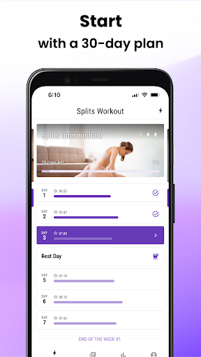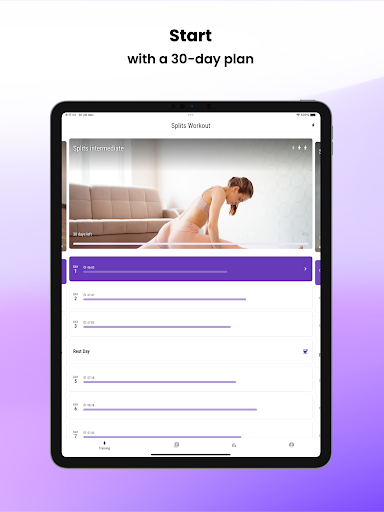 ** The Do the Splits in 30 Days app offers a variety of stretches for flexibility, as well as a step-by-step guide for beginners who are just starting with splits training. The app also includes stretch training for back pain. So to get a healthy body and core, try our app and learn splits effortlessly.
