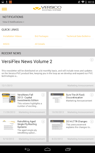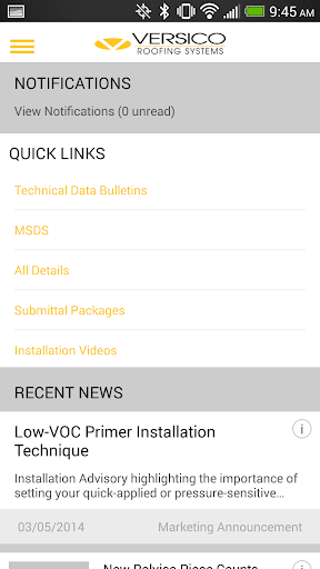 The new Versico Roofing Systems mobile app provides you with instant access to the news, content and installation information that you need. The app syncs seamlessly with your Versico Roofing Systems website profile, so you can access the resources you need from anywhere, at any time – all from your mobile device. Key features of the new Versico Roofing Systems App include: