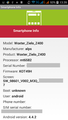 · Smartphone Info: Data obtained as smartphone version, manufacturer, model, product, phone number, SIM serial, android version...