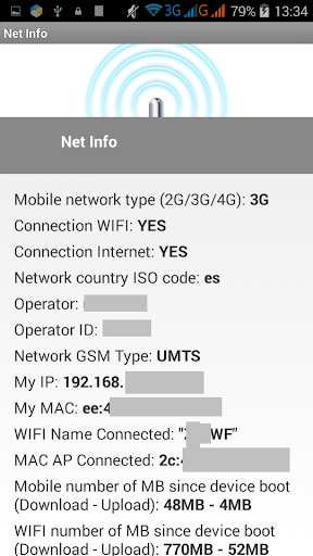 · Net Info: Net Info shows net status, gsm, wifi, ISO, operator, IP, Name WIFI, traffic stats...