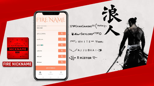 Fire Name Nickname Font Style Generator is a premium personalization app for all fire games and social media where you can customize your names to look cool and stylish. It can be used to generate your fancy name with amazing symbols and create you bio full of stylish fonts and fancy art.