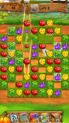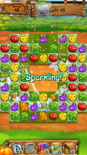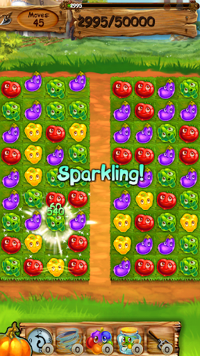 Become the best sweeper at the farm. Make lines of 3 or more to clear the board. Matching 4 or 5 items in line will create various special effects. All charms are vegetables like crops, onions, carrots, tomatoes, corn and many more.
