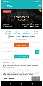 vGames Arena (VGA) is free to use a platform where you can organize or join video games competitions and matches and earn money as a reward right from your home. The platform is available as a mobile app, you can download the app on your smartphone and can register for free. VGA allows you to join matches/tournaments/competitions of popular video games like PUBG Mobile, COD Mobile, Free Fire organized by us or by other users. You can join the match by paying an entry fee or buying monthly subscription if it is a paid match or you can join the match free of cost if it is a free match. You can earn prizes by winning the match at first or second position and by killing enemies in the game. VGA also allows you to organize your own matches/tournaments/competitions of popular video games like PUBG Mobile, COD Mobile, Free Fire. You can specify various settings while organizing a match like a map, mode, type, entry fee or monthly subscription based, etc. You will earn money as a result of organizing a successful match.