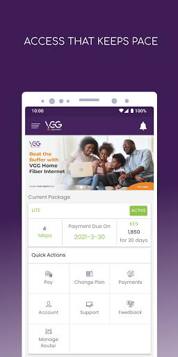 VGG Connect enables customers make payments, upgrade package, manage router remotely, directly communicate with us and many other services.