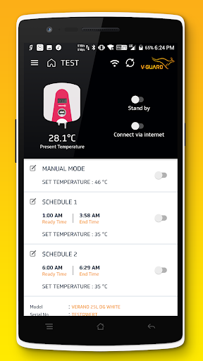 Verano water heater is power-packed geyser with next-generation features. This new model can be controlled by a smartphone or with a remote. Set your own schedule for turning the water heater on and off as per their own convenience using app.
