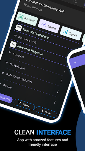 Speed VPN - 4G Wifi Network allows you to switch to LTE Mode with 4G Network and boost your internet speed by connecting to the fastest VPN Server. Just switch on the tap button and connect with a super fast VPN with your desired location server. This 4G WiFi Network includes all the latest tools like One click to switch to a 4G network, Check the internet connection speed, fast find accurate signal test, SIM Information, WiFi location view in the map, Qr code scanner to connect with wifi or many more with this helpful super fast VPN - 4G WiFi Network App