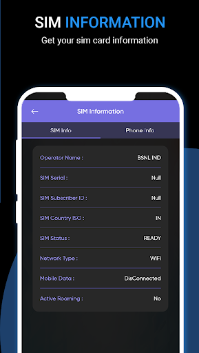 Find all the details of the SIM card and Phone information