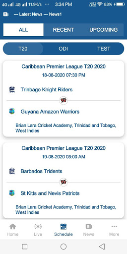 • Schedules for all Upcoming matches