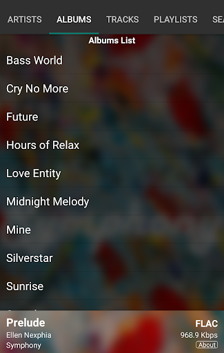 Built with ease of use and high quality sound output in mind, navigating between player and music library is very easy. Just swipe down the main player to reveal music library, swipe left and right to choose between tabs at the music library, and swipe the player back up again to reveal the main player.