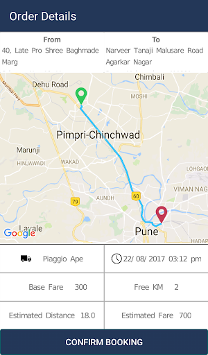Select the pick-up and destination points