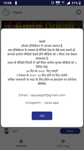 OPUS - Watch 30 Tage Alle Videos unserer App und verdienen Geld in Ihrer Brieftasche, erhalten Sie Geld in der Bank