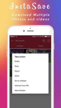 Instasave for Instagram helps you to save Instagram photos and videos to your device.
