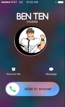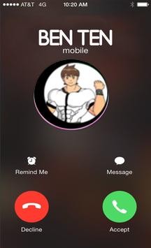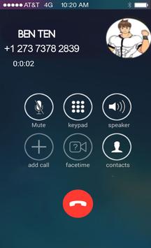 Do you love to amaze your friends with New call simulator and pretend call from ben the kid ten ? This ben calls ten is a new version from the fun ultimate alien fake call, that will allow you to get fake call from ben and talk to ben ultimate on the phone. Now and thanks to this ben call ten or ben fake call 10 you can schedule a ultimate alien fake call to get a ben calling ten alien in the ben fake 10 call simulator to amaze your friends and family members. If you a ben action ten games fan and you dream to talk to ben ultimate on the phone the ben fake 10 call simulator make that possible and by allowing you to personalize a ben fake call 10 and recieve instant ultimate alien fake call from ben.