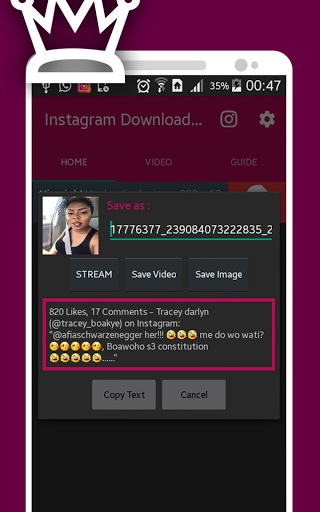 - Video Downloader for Instagram is not affiliated with Instagram. It is a tool to download video and photo from Instagram.