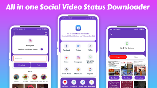 All in on status saver enables downloads of media from popular social media platforms to your own device for viewing when offline or sharing them on your own social media account.