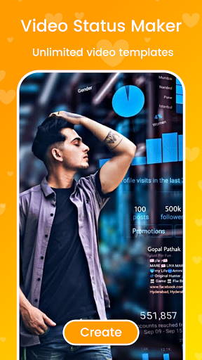 * Create videos and share them with friends on social media such as WhatsApp, ShareChat, Welike, VidStatus, Likee, Bingo, MBit.