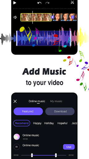 • Professional music video creator with transitions and effects. Make videos from pics with high-quality music easily.