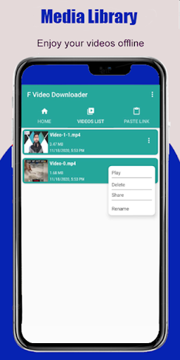 Application is easily accessible to download video watch online video & manage offline video, delete rename and share.