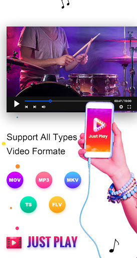 Just PLAYit Video Player supports ALL video formats, 4K/ultra HD video files, and plays them with high-definition.Support ALL video formats, including MKV, MP4, M4V, AVI, MOV, 3GP, FLV, WMV, RMVB, TS etc.
