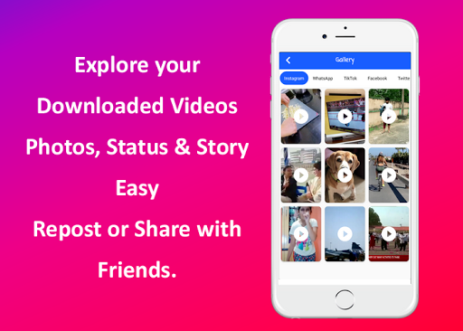 & Photos to gallery and play or view it and share with friends. You can easily also share all the downloaded media on your favorite Social Media.