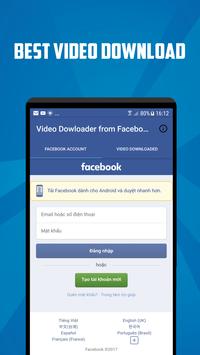 Download and save video from Facebook very fast and easy with this downloader application. You must login your account Facebook and choose video you want. It's will automatically download to your phone.