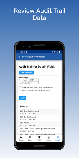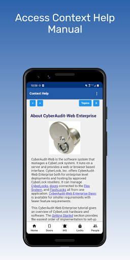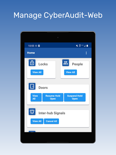 This app is designed to be a window into CyberAudit-Web, with a very small set of modules and actions supported. The modules include: Doors, Interhub-Signals, Locks, and People.