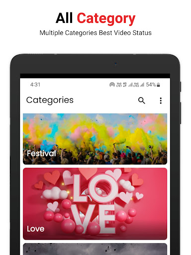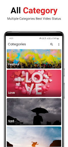 Full Screen Video Status for WhatsApp is Multiple Indian language collection of free Hindi, English, Gujarati, Marathi, Tamil, Telugu, Punjabi, Haryanvi, Bhojpuri, Odia, Bengali etc.. languages Video Status! We are providing latest Status in various categories. This apps is updated regularly so stay tuned for new additions.