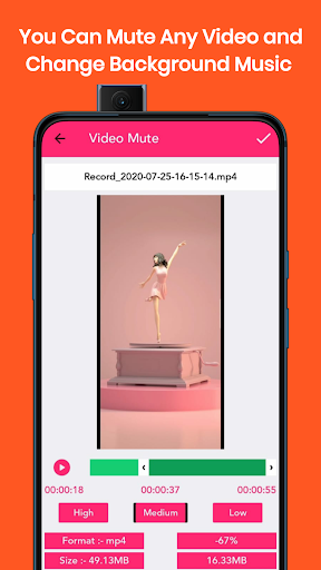 ● Video editor with music(Video maker, Video cutter use an advanced technology to improve the quality of your converted video, it saves more than 90% size without losing much quality.