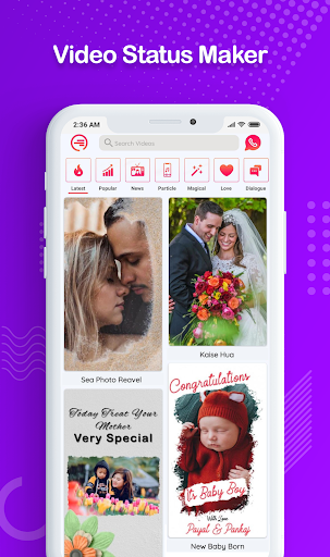 You can easily create Birthday Video Status, Anniversary Video Status, Magical Video Status, Lyrical Video Status, Video status for Chat App, Story for Social Media, VidShort Video Status and many other awesome videos.
