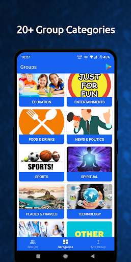 Groups are arranged in categories so as to assist user to locate groups of preference.