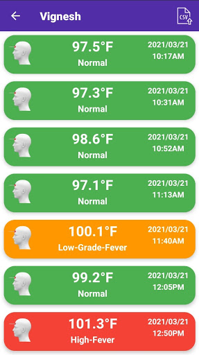 3) 98.8 °F – 100.4 °F – Low Grade Fever (Orange)