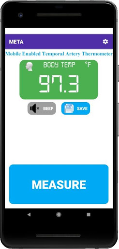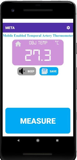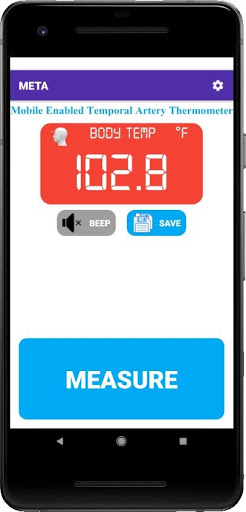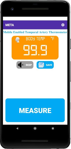 META is a non-contact Infra-red thermometer that gives temperature of the forehead close to the temporal artery It works as an attachment to a smartphone. The thermometer uses a state-of-the-art IR sensor that is factory calibrated and takes advantage of large display and battery present in a smartphone.