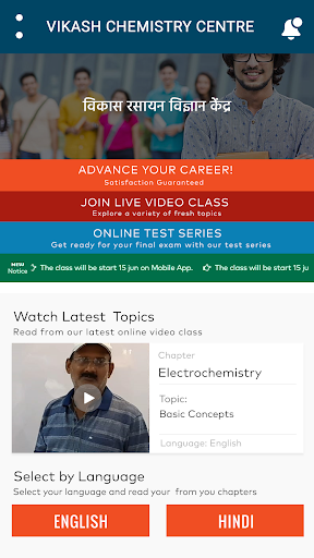 Vikash Chemistry Centre by AK Singh have started to carry out their day to day teaching activities. This application will offer student of 11th, 12th (Chemistry) to read and watch videos of daily activity done in the class room by topics and chapters.
